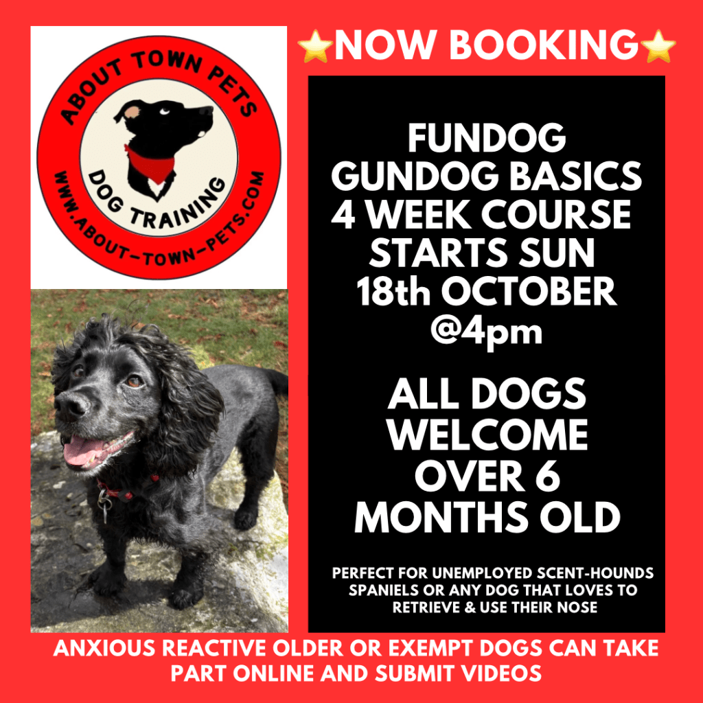 4 weeks of beginners gundog tasks 4 SPOTS LEFT – FUNDOG GUNDOG STARTS 18th OCTOBER at 4pm.